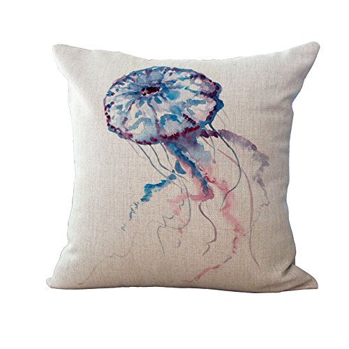 Hengjiang, copricuscino quadrato in lino e cotone, raffigurante un polipo colorato, ideale come decorazione per cuscino, divano 02 Jellyfish
