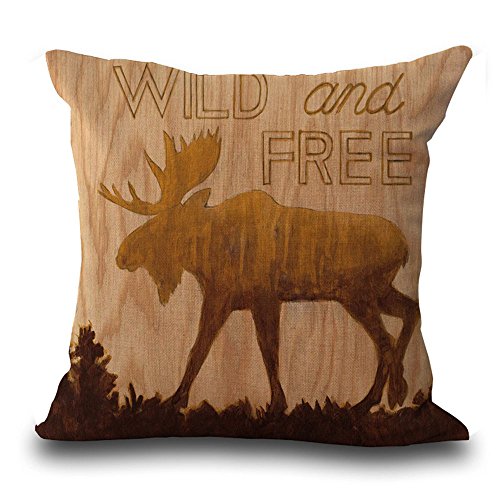 Hengjiang WEIANG - Federa per cuscino in cotone con animali di capra, stile vintage, colore: Marrone (03 alce)