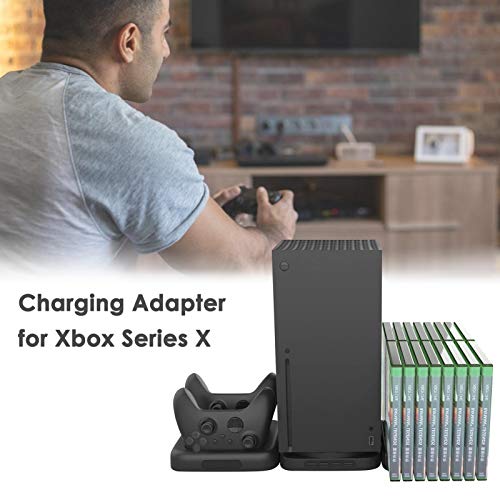 Hengjierun Supporto Verticale Multifunzionale per Xbox Series X, Supporto per Console con Caricatore per Controller, Organizer per Rack di Giochi (Fino A 16 Pezzi)