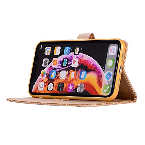 HengJun Custodia in pelle iPhone XR, custodia magnetica in pelle PU lucida glitterata con supporto per slot per carte di credito con custodia a portafoglio con cinturino da polso - Tyrant Gold