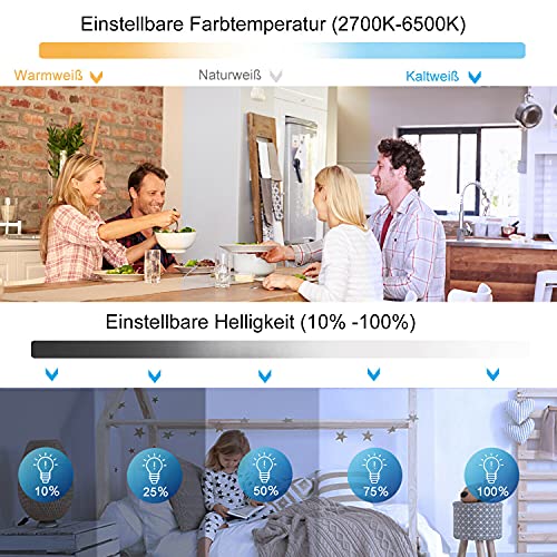 La plafoniera è dotata di luce bianca calda, dimmerabile (3000 - 6500 K). Con il telecomando a infrarossi è possibile regolare il colore e la luminosità della luce.