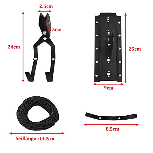 Il sollevatore per bicicletta con copertura del garage utilizza ferro resistente e corde in nylon resistenti per la massima durata e resistenza. Il sistema di sospensione del rullo permette di sollevare mountain bike o bici da strada fino a 20 kg.