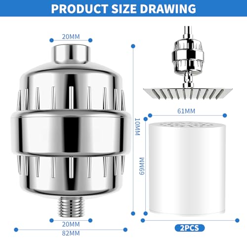 Hengrongshen Filtro Doccia Anticalcare,Filtro a 24 Strati con 2 Elementi Filtranti Compositi Sostituibili Filtro Acqua Doccia,Filtro per Doccia a è Adatto a Varie Installazioni Nel Bagno