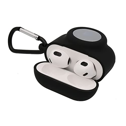 HENGSI 2-in-1 Custodia in Silicone per AirPods 3 Generazione e Airtag, Con anello portachiavi, protezione contro la perdita delle cuffie - Nero