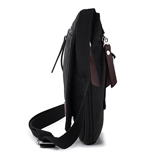 Hengwin Borsello in Tela Borse a Spalla Uomo Piccolo Sacchetto Messenger Borsa da Cintura Borsa a Tracolla per iPad Mini Telefono Cellulare (Nero)