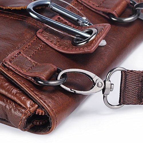 Hengwin Borsello Tracolla Piccolo Uomo Borsa a Spalla in Pelle per Cellulare Borsa Cintura in Pelle con Moschettone Clip da Cinturatura per Smartphone Waist Bag