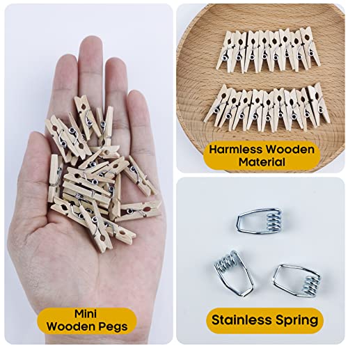Hengxinc 168 Pezzi Mollette Legno Piccole 25MM Mollette Legno Matrimonio Mollette Piccole Per foto Per Polaroid Foto Con 10M Jute String DIY Mini Mollette Legno per Esposizione a Parete (naturale)