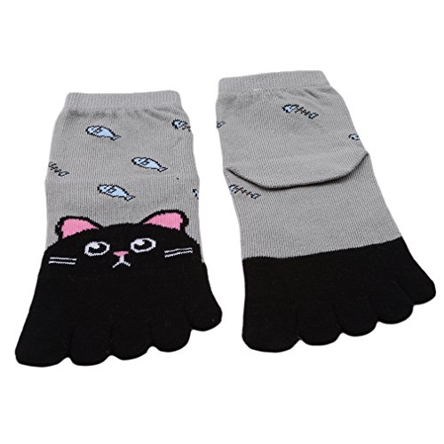 Hengxing - Calzini per bambini, in cotone, con motivo a forma di gatto, con cinque dita, per sport, corsa, gatto, taglia 1