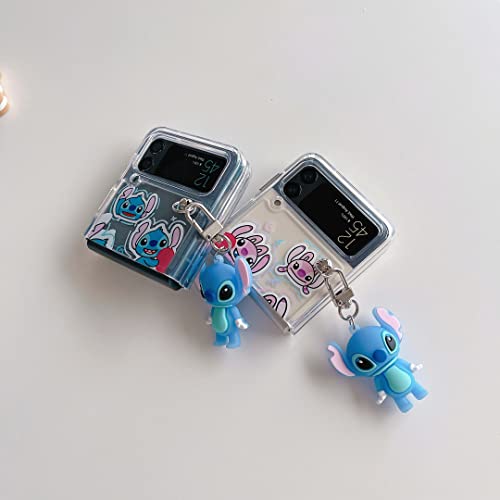 HENJI Custodia trasparente per telefono compatibile con Samsung Galaxy Z Flip 3 5G, custodia protettiva antiurto in morbido TPU per ragazze con ciondolo anime