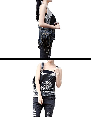 Henmerry Rock vintage gothic retro Steampunk Handbag portamonete, Uomo donna, Black6