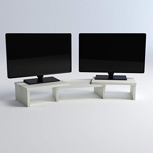 Henor Supporto girevole per monitor e rialzo per schermo in legno, 96-104 x 26,5 x 14 cm, bianco