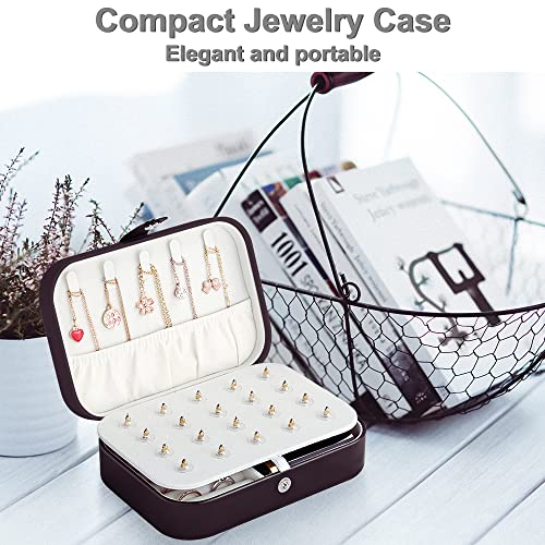 Henzin Portagioie da viaggio, piccolo portagioie da donna, in pelle PU, piccolo portagioie da viaggio, per anelli, orecchini, collana, regalo, nero
