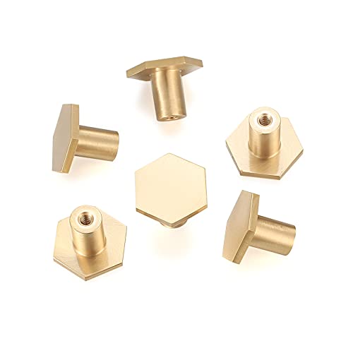 Heozhuyi 6 Pezzi Pomelli per Mobili Ottone, Pomelli Esagonali per Cassetti, Maniglie per Mobili da Cucina, Pomello Porta per Porte, Armadi, Cassetti, Mobili - Oro (22 * 18mm)