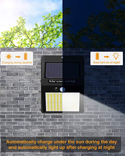♥【lampade solari a led da esterno con 3 Modalità】 ①Modalità luminosità media, l'alimentazione si accende automaticamente di notte e si spegne automaticamente durante il giorno. ② Modalità sensore luce scura, luce scura quando non in movimento, piena luminosità quando viene rilevato un movimento. ③ Modalità luce di induzione, la luce è spenta quando non in movimento, la luce è accesa quando viene rilevato lo spostamento.