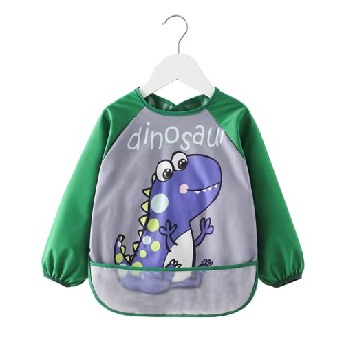 Herbests Camice da pittura per bambini, 2-4 anni, per bambini, per bricolage, impermeabile, con maniche lunghe e tasche, per cucinare, bricolage, tono per ragazzi e ragazze, dinosauri