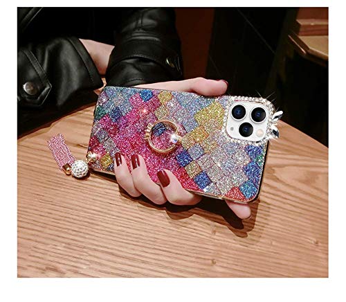 Herbests Compatibile con iPhone 11 PRO Max Cover Silicone Sottile Custodia Brillantini Paillettes con Anello Supporto Case Cover Morbido TPU Protettiva Case con Tassel,Geometria