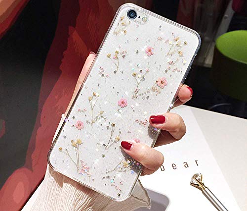 Herbests Compatibile con iPhone 6 Plus/6S Plus Custodia, Copertura Trasparente con Fiori Cover Ultra Sottile Morbida Silicone Protettiva Cover Antiurto Trasparente TPU Custodia,Rosa Giallo