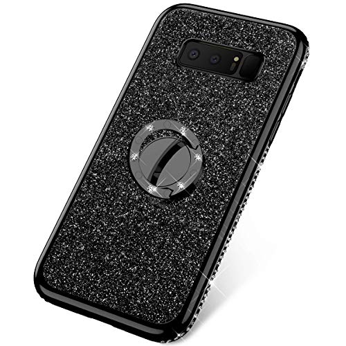 Herbests Compatibile con Samsung Galaxy Note 8 Cover Caso, Copertura in Silicone con Anello Ring Supporto Custodia Brillantini Glitter Bling Strass Diamante Placcatura TPU Silicone Case Cover,Nero