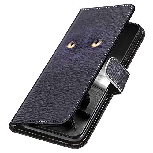 Herbests Compatibile con Samsung Galaxy A51 Cover, Flip Folio Case Protettiva in Pelle Custodia a Portafoglio Cover Carte di Credito da Funzione Stand Protezione Custodia,Gatto nero