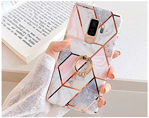 Herbests Compatibile con Samsung Galaxy S9 Plus Cover Silicone Sottile Morbido TPU Protettiva Case Cover con Anello Supporto Custodia Cuciture di Placcatura Marmo Antiurto Slim Soft Case,Marmo-1