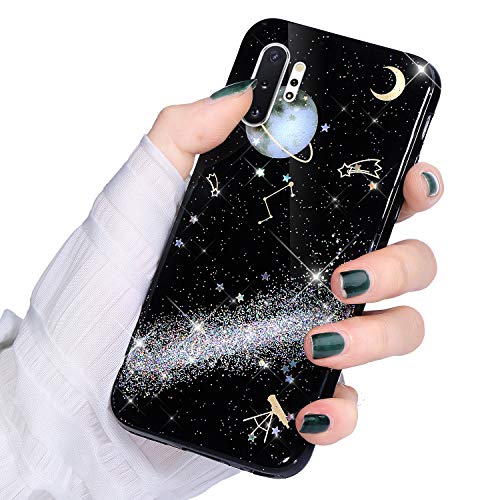 Herbests Compatible per Samsung Galaxy Note 10 Plus Cover Silicone Nero Custodia Paillettes Glitter TPU Protettiva Case Serie del Universo Ultrasottile Morbida Gomma Custodia,Argento