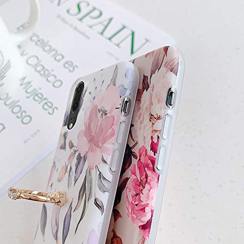 Herbests Cover Compatibile con Huawei P20 - Custodia Morbida in Silicone Cover Ultra Sottile Elegante Fiori Custodia Glitter con Anello Supporto Cover TPU Bumper Antiurto,Rosso