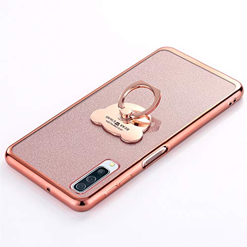 Herbests Cover Case Compatibile con Samsung Galaxy A50, Custodia Glitter Sparkle Bling TPU Silicone Cover con Orso Anello Ring Supporto Ultra Sottile TPU Gomma Silicone Protettiva Case,Oro Rosa