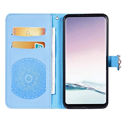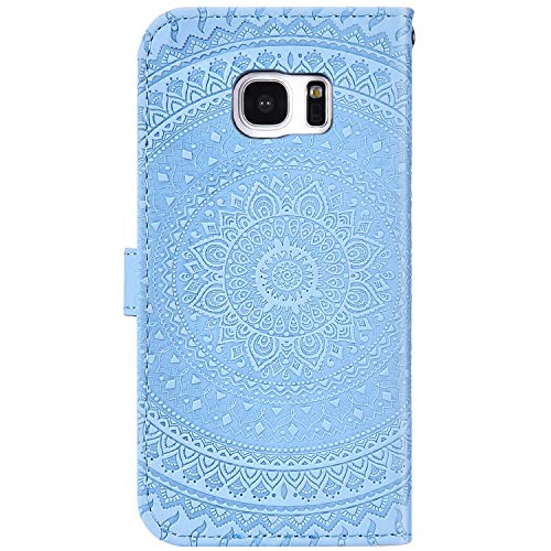 Herbests Cover Compatibile con Samsung Galaxy S7 Flip Case Custodia Portafoglio in Pelle Cover a Libro Custodia Mandala Brillantini Diamante Strass Case Cover con Funzione Stand,Blu