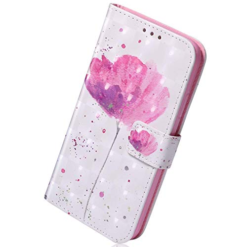Herbests Cover Compatibile con Samsung Galaxy A51 Flip Case Custodia Protettiva in Pelle PU 3D Disegni Colorate Wallet Case Copertura con Funzione Supporto/Chiusura Magnetica,Fiore Rosa