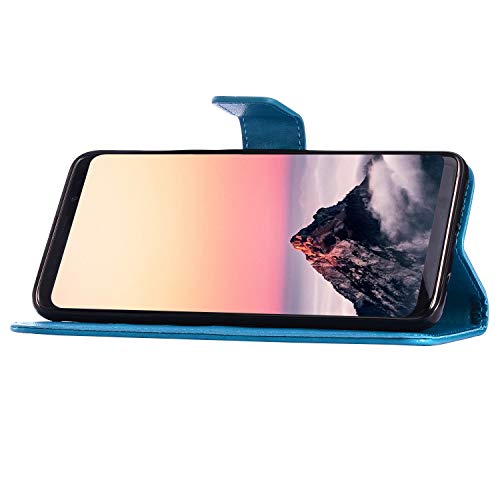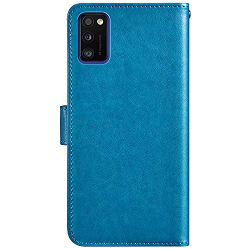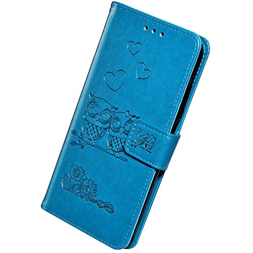 Herbests Cover Compatibile con Samsung Galaxy A41, Custodia Protettiva Portafoglio in Pelle Retrò Gufo Custodia Puro Color Cover Chiusura Magnetica Funzione di Supporto,Blu