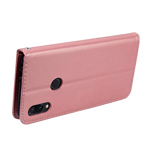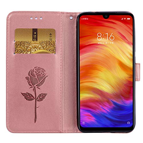 Herbests Cover Compatibile con Xiaomi Redmi Note 7 Custodia PU Leather Retro Vintage Flip Cover Case Goffratura Rose Fiore Modello Copertura Puro Color Custodia Portafoglio, Oro Rosa