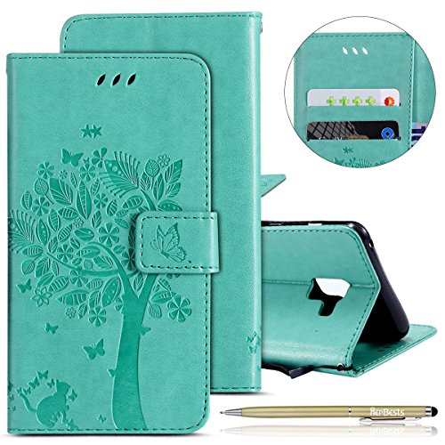 Herbests Cover Galaxy A8 2018, Custodia Galaxy A8 2018 Portafoglio, Slim Elegante Vintage PU Leather Wallet Case Copertura, Supporto di Stand e Porta Carte di Credito Cuoio Custodia
