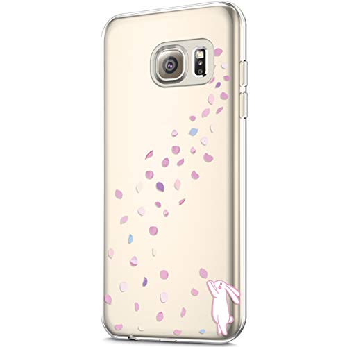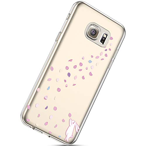 Herbests Cover Galaxy S6, Case Galaxy S6 Flessibile Morbida Gel Silicone Custodia Ultra Slim Colorate Carino Dipinto Crystal Clear TPU Silicone Case,Coniglio