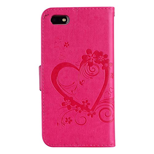 Herbests Custodia Compatibile con Huawei Y5 2018 Case Cover PU Pelle Custodia Portafoglio Elegante Cuore Amore Fiori Diamante Strass Flip Wallet Case con Supporto, Rose Red