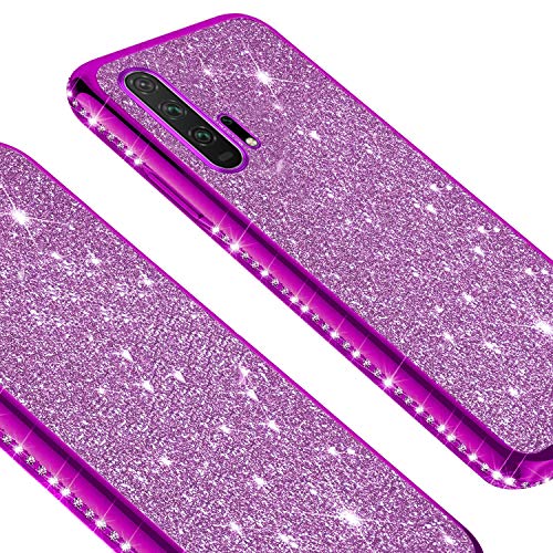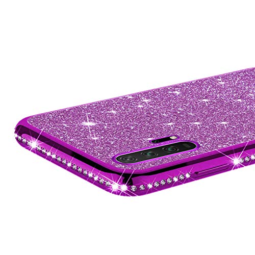 Herbests Custodia compatibile con Huawei Honor 20 Pro Cover Case Brillantini Bling Paillettes Custodia Diamante a Strass TPU Silicone Bumper Case Slim Protettiva Antiurto Cover,Viola