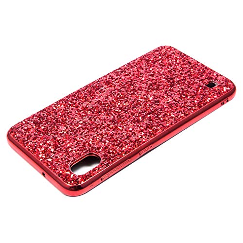 Herbests Custodia Compatibile con Samsung Galaxy A10 Cover Bling Bling Brillantini Glitter Paillettes Coperture TPU Silicone Custodia Slim Backcover Protettiva Case, Rosso