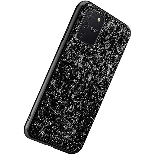 Herbests Custodia Compatibile con Samsung Galaxy S10 Lite Cover Glitter Bling Brillantini Paillettes Copertura TPU Silicone Sottile Custodia Backcover Protettiva Case, Nero