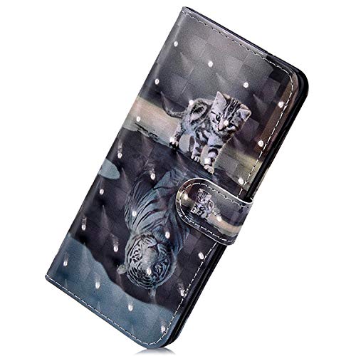 Herbests Custodia compatibile con Samsung Galaxy S10, Cover Leather Flipcase Ultra Sottile PU Pelle Custodia Dipinto Colorate Modello Cover Case con ID Slot e Supporto di Stand,Gatto Tigre