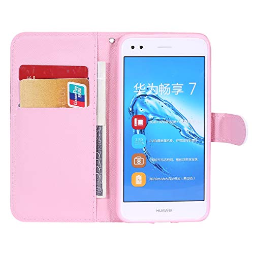 Herbests Custodia Huawei Y6 PRO 2017, Cover Huawei Enjoy 7 Leather Flipcase Ultra Sottile PU Pelle Dipinto Colorate Modello Custodia con ID Slot e Supporto Stand Cover