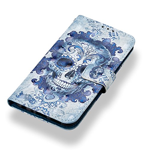 Herbests Custodia per Huawei Enjoy 7S/P Smart Pelle, Flip Stand Case Cover Huawei Enjoy 7S Belle Colorate del 3D Disegno Copertura con ID Slots Chiusura Magnetica Wallet Cover,Cranio Nuvola