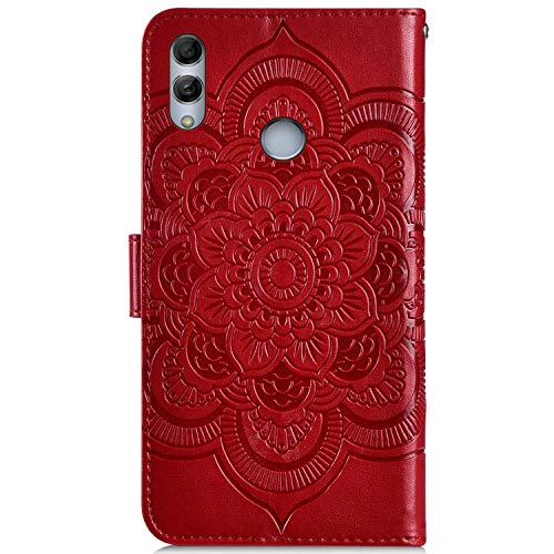Herbests Mandala Custodia Compatibile con Huawei P Smart 2019 Leather Case Diamante a Strass Custodia a Portafoglio Magnetica Flip Case Pelle Wallet Cover con Slots per Schede,Rosso
