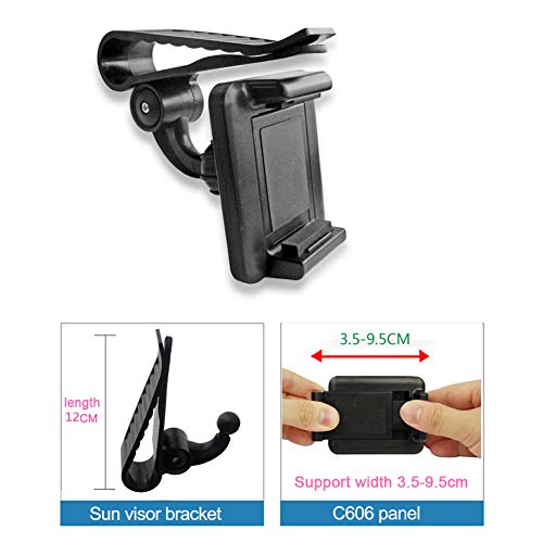 Herbests Supporto Smartphone Auto, Supporto Universale per Parasole Auto Porta Cellulare Auto Rotazione a 360° Compatibile con Larghezza del Telefono 35-90 mm e GPS Dispositivi