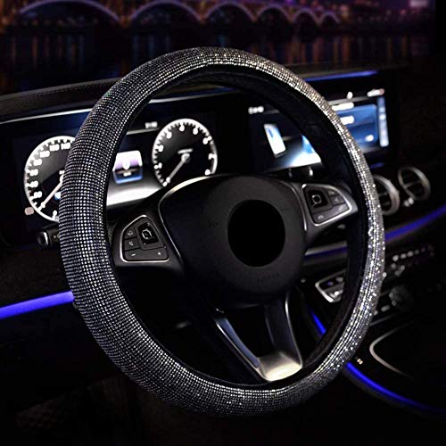 Herbests Universale Coprivolante per Auto in Pelle, Coprivolante Donna, Sparkle Glitter Bling Crystal Diamante Coprivolante Auto Antiscivolo Accessori di Protezione 38 cm/15 Pollici,Nero