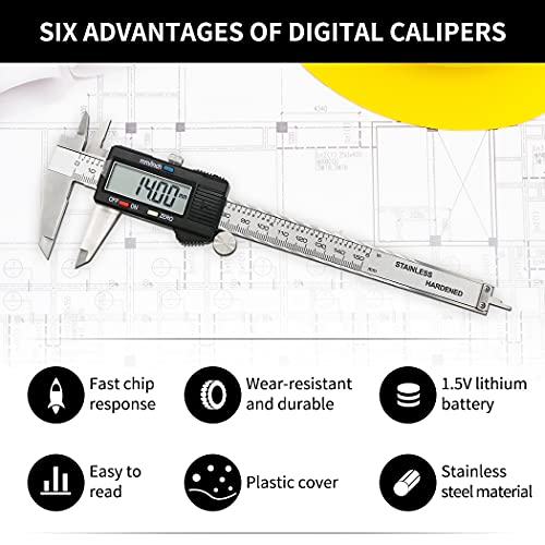 Alta precisione: la griglia in vetro appositamente lavorata può prevenire efficacemente la precisione delle pinze dei freni a causa di umidità ambientale e magnetismo. Chip di sovracorrente integrato con protezione elettrostatica avanzata per mantenere la stabilità digitale. Intervallo di misurazione: 0 - 6 pollici/0 - 150 mm;