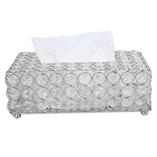 HERCHR Copri Scatola Rettangolare in Tessuto, Porta tovaglioli in Cristallo Decorativo Porta tovaglioli Scatola in Carta igienica Contenitore in Carta in Cristallo(Argento)