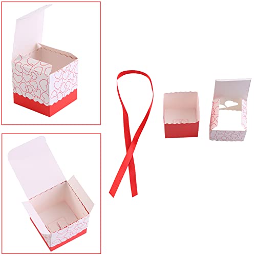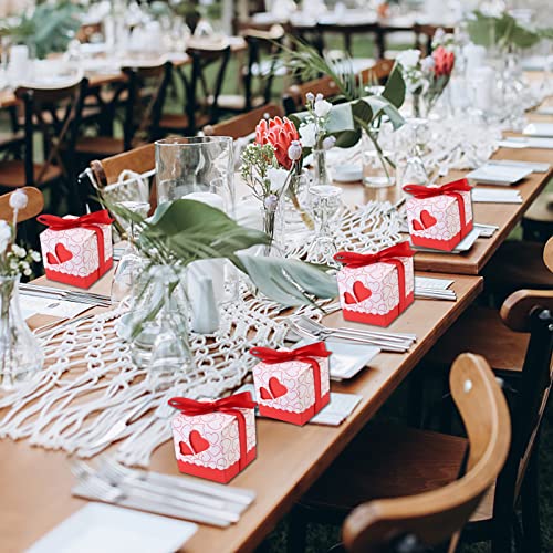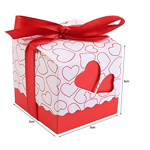 HERCHR Scatole per bomboniere quadrate da 50 Pezzi, scatole per Caramelle al Cioccolato a Forma di Cuore, Confezione Regalo con Nastro per Matrimonio, Compleanno, Festa di Natale(Cuore Rosso)