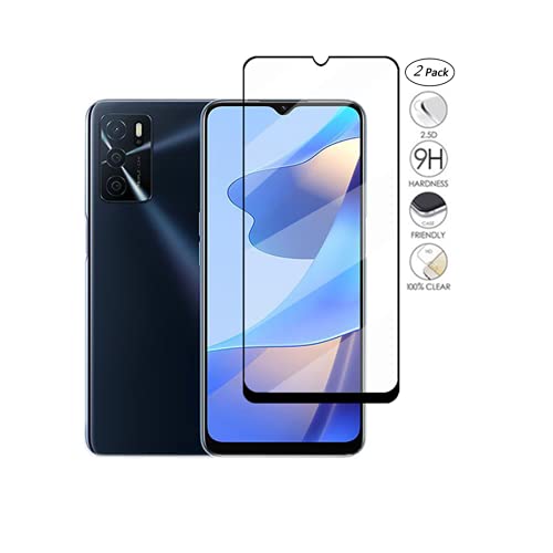 HERCN Vetro Temperato Compatibile con Oppo A16 6.52",Ultra Resistente Full Coverage Full Glue 9H Durezza Pellicola Protettiva in Vetro Temperato per Oppo A16 Smartphone (Nero-2 Pack)