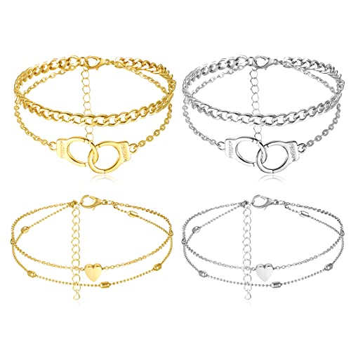 Il pacchetto include: riceverai 4 pezzi di cavigliere a strati boho in 2 stili, inclusi 2 pezzi di cavigliere con ciondolo a cuore e 2 pezzi di cavigliere con manette;
