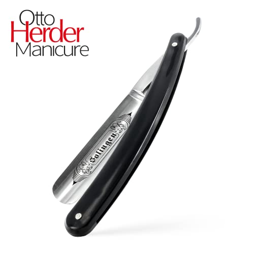 Herder Solingen - Rasoio da barba con custodia in plastica nera, molto affilato