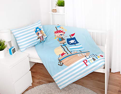 Il regalo ideale per tutte le occasioni: set di biancheria da letto per bambini, traspirante e reversibile con la tenera stampa di piccoli animali pirati per sogni d'oro